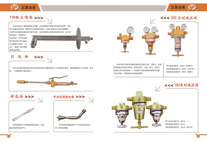 本公司產品配套應用于冶金、石油、化工及各大鋼鐵企業.主要產品有:煉鋼用的(HPZ系列:氣水霧化噴嘴、PZ系列水噴嘴.方坯、板坯連鑄機用的各種二冷段噴淋管架、配套使用的接頭體,各種規格、各種形式的旋轉接頭、大(中)包燒烤器、火焰切割機及配套的介質箱、割嘴燒嘴、引錠帽、引流槍、烤包槍、電磁調節閥組、止回閥、減壓閥),軋鋼廠用的(軋輥冷卻水管)等。